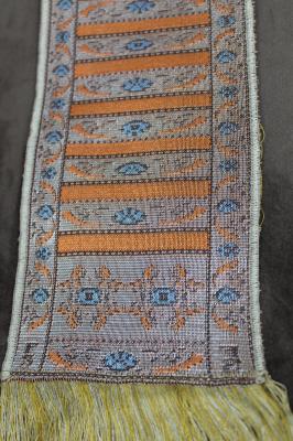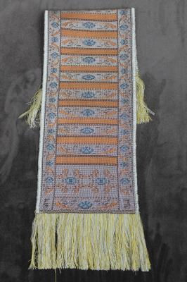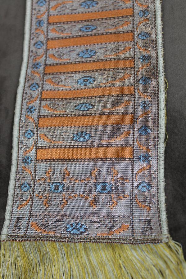 Настоящей гордостью Беларуси, признанным во всем мире достижением ее многовековой культуры являются слуцкие пояса. Пояса сотканы с соблюдением всех оригинальных традиций и использованием натурального шелка, металлизированных нитей, имитирующих золото и серебро, характерная орнаментация и цвета исторических образцов. Аналогов этой продукции в мире нет. Слуцкий пояс на протяжении своей истории являлся значимым предметом в культуре и быту белорусов. Он использовался для различных целей: выполнял практические, символические и обрядовые функции, был необходимым элементом одежды. Слуцкому поясу и сегодня придается большое значение – он выполняет сразу несколько функций: символическую, духовную, этическую и эстетическую. Слуцкий пояс может использоваться как: предмет искусства, элемент декора, статусный подарок, оберег, семейная ценность, уникальный сувенир. Арт: 21с-171-224/98-21, Размер: 33х9,5 см. Состав: 61% шёлк натуральный; 17% нить металлизированная; 22% нить п/э. Цвет: оранжевый, голубой. Производство: Слуцк "Слуцкие пояса"