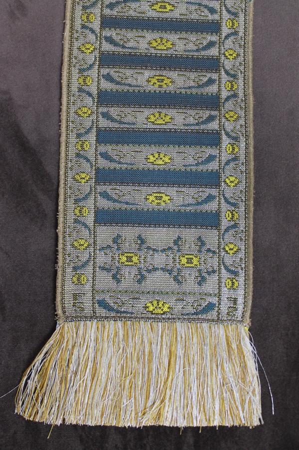 Настоящей гордостью Беларуси, признанным во всем мире достижением ее многовековой культуры являются слуцкие пояса. Пояса сотканы с соблюдением всех оригинальных традиций и использованием натурального шелка, металлизированных нитей, имитирующих золото и серебро, характерная орнаментация и цвета исторических образцов. Аналогов этой продукции в мире нет. Слуцкий пояс на протяжении своей истории являлся значимым предметом в культуре и быту белорусов. Он использовался для различных целей: выполнял практические, символические и обрядовые функции, был необходимым элементом одежды. Слуцкому поясу и сегодня придается большое значение – он выполняет сразу несколько функций: символическую, духовную, этическую и эстетическую. Слуцкий пояс может использоваться как: предмет искусства, элемент декора, статусный подарок, оберег, семейная ценность, уникальный сувенир. Арт: 21с-170-224/98-21, Размер: 33х9,5 см. Состав: 41% шёлк натуральный; 16% нить металлизированная; 43% нить п/э. Цвет: синий, желтый. Производство: Слуцк "Слуцкие пояса"