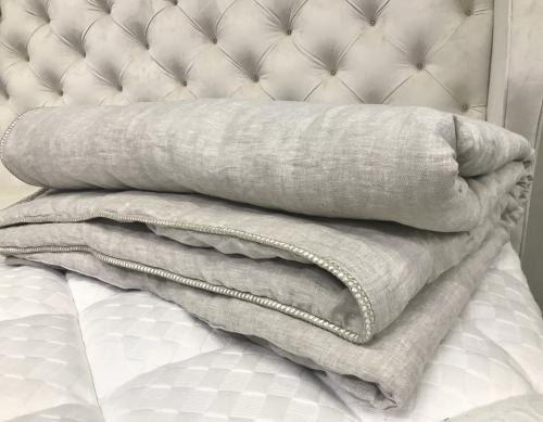 Наполнителем для стеганых одеял из коллекции "Home Linen" служит 80% лён. Это максимальное содержание льна в наполнителе, которого можно добиться машинным трудом. Состав чехла: 100% лён. Степень теплоты: облегчённое. Благодаря такому сочетанию: лён внутри и лён снаружи, одеяло абсолютно экологично. Также лён славится своей легкостью, гигроскопичностью и прекрасными терморегулирующими свойствами. Одеяло очень комфортно по ощущениям: оно нежно "обнимает", а вес его чувствуется только как лёгкая защита, без эффекта тяжести. Одеяло изо льна гиппоалергенно, в нем не живут пылевые клещи и другие паразиты, поэтому его рекомендуют особо чувствительным людям и аллергикам. Производство Республика Беларусь.