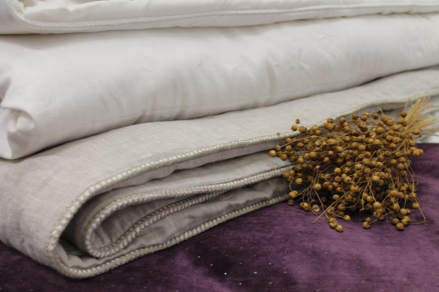 Наполнителем для стеганых одеял из коллекции "Home Linen" служит 80% лён. Это максимальное содержание льна в наполнителе, которого можно добиться машинным трудом. Состав чехла: 100% лён. Степень теплоты: всесезонное. Благодаря такому сочетанию: лён внутри и лён снаружи, одеяло экологично. Также лён славится своей легкостью, гигроскопичностью и прекрасными терморегулирующими свойствами. Одеяло очень комфортно по ощущениям: оно нежно "обнимает", а вес его чувствуется только как лёгкая защита, без эффекта тяжести. Одеяло изо льна гиппоалергенно, в нем не живут пылевые клещи и другие паразиты, поэтому его рекомендуют особо чувствительным людям и аллергикам. Производство Республика Беларусь.