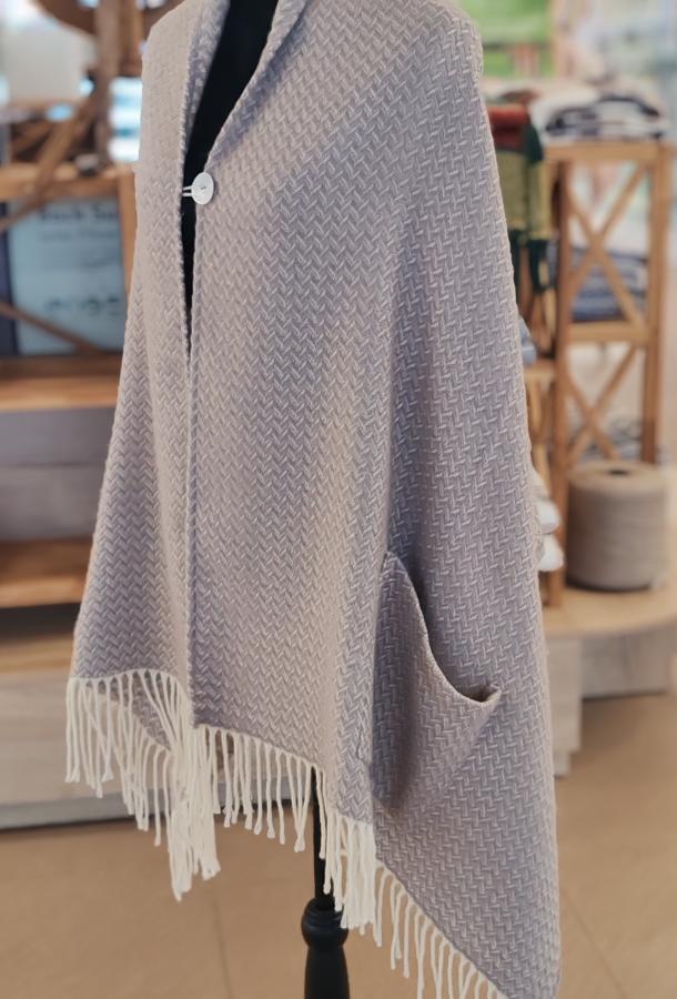 Палантин шерстяной (100%) с карманами "Жемчуг" в подарочной коробке