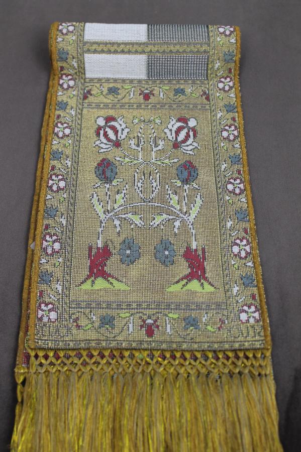 Настоящей гордостью Беларуси, признанным во всем мире достижением ее многовековой культуры являются слуцкие пояса. Пояса сотканы с соблюдением всех оригинальных традиций и использованием натурального шелка, металлизированных нитей, имитирующих золото и серебро, характерная орнаментация и цвета исторических образцов. Аналогов этой продукции в мире нет. Слуцкий пояс на протяжении своей истории являлся значимым предметом в культуре и быту белорусов. Он использовался для различных целей: выполнял практические, символические и обрядовые функции, был необходимым элементом одежды. Слуцкому поясу и сегодня придается большое значение – он выполняет сразу несколько функций: символическую, духовную, этическую и эстетическую. Слуцкий пояс может использоваться как: предмет искусства, элемент декора, статусный подарок, оберег, семейная ценность, уникальный сувенир. Арт: 22с-65-224/356-22. Размер: 130х16 см. Состав: 62% шёлк натуральный; 9% нить металлик; 29% нить п/э. Производство: Слуцк "Слуцкие пояса"
